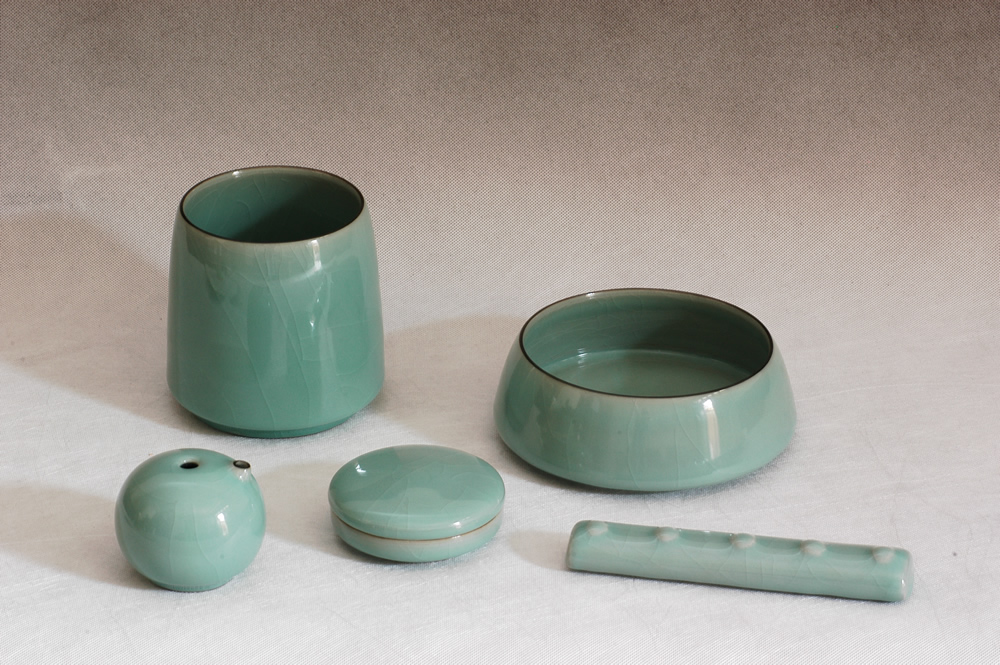 The city of Longquan in the coastal Chinese province of Zhejian is known for its celadon pottery and the traditional firing technology that imparts its distinctive glaze. Compounded from violet-golden clay and a mixture of burnt feldspar, limestone, quartz and plant ash, the glaze is prepared from recipes that have often been handed down for generations by teachers or within families. The glaze is applied to a fired stoneware vessel, which is then fired again in a repeated cycle of six stages of heating and cooling where precise temperatures matter a great deal: either over- or under-firing will spoil the effect. Experienced celadon artists carefully control each stage with a thermometer and by observing the colour of the flame, which reaches temperatures as high as 1310º C. The final product may take either of two styles: "elder brother" celadon has a bluish-grey finish with a crackle effect, while the "younger brother" variety has a thick, lavender-grey and plum-green finish. With its underlying jade-like green colour, celadon fired by the family-oriented businesses of Longquan is prized as masterwork-quality art that can also serve as household ware. It is a proud symbol of the cultural heritage of the craftspeople, their city and the nation.