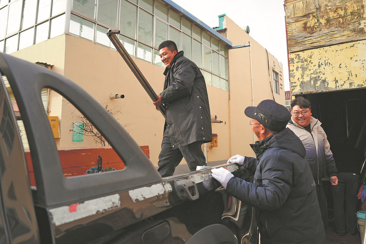 Troupe members load props and stage equipment into a van ahead of an upcoming performance. [Photo by Qi Zhiyue/Xinhua]