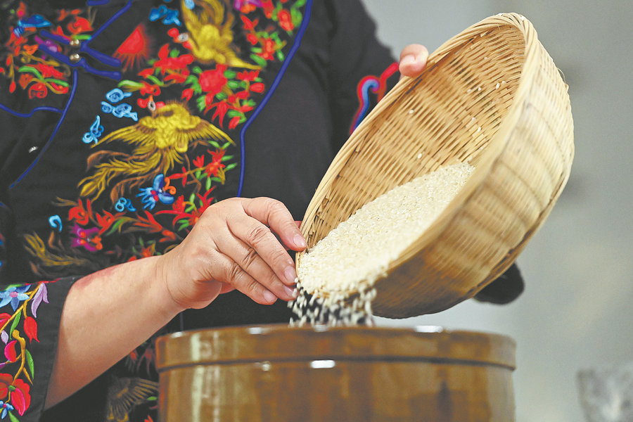 The process of making shengzha mifen involves soaking, fermenting, grinding, pressing, steaming, kneading, pounding, and final extrusion. [Photo/Xinhua]