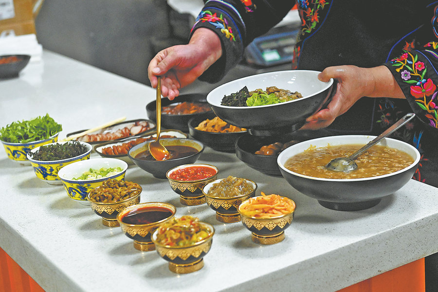 The process of making shengzha mifen involves soaking, fermenting, grinding, pressing, steaming, kneading, pounding, and final extrusion. [Photo/Xinhua]