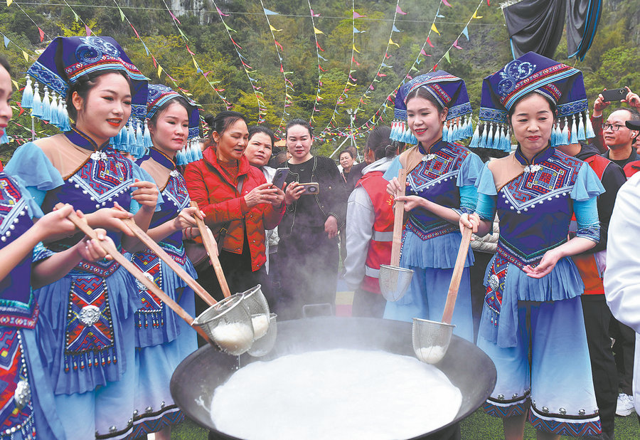 At the event, women lift freshly pressed noodles during the opening ceremony, honoring a long-held culinary tradition. [Photo/Xinhua]