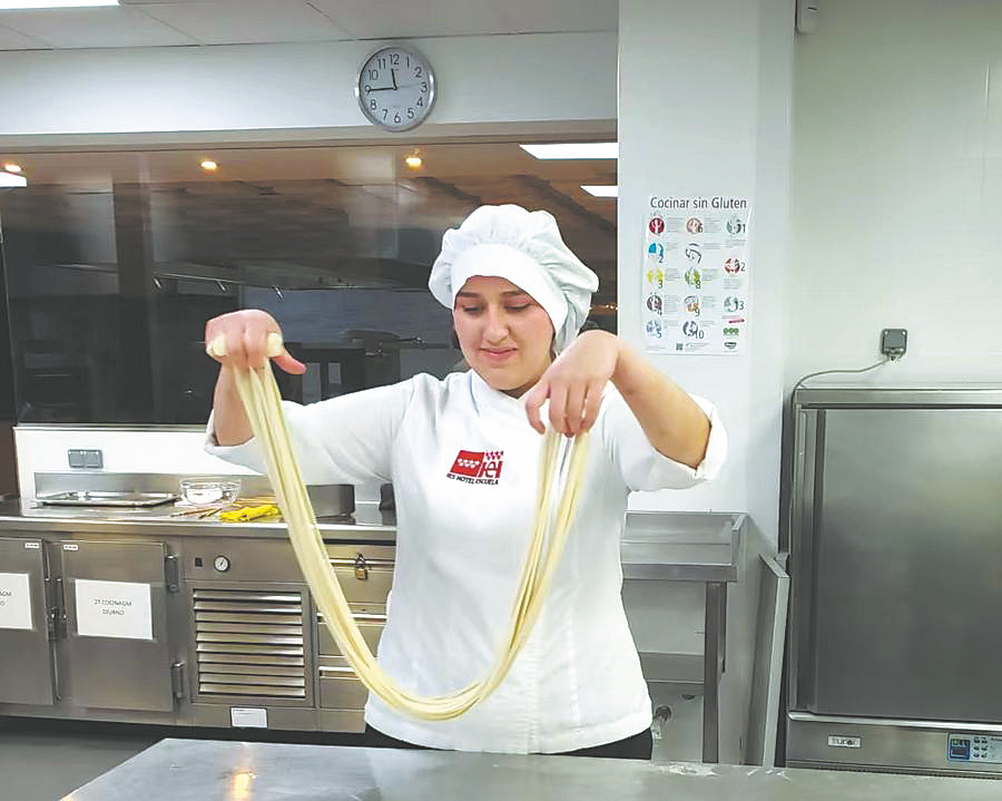 LANZHOU — With swift, practiced hands, 42-year-old Peng Jingjing twists, stretches, and folds dough into slender strands before a dozen students at the I. E. S. Hotel Escuela in Madrid, bringing the art of hand-pulled noodles to life.