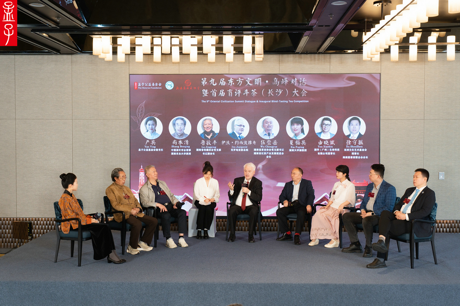 On Sunday, a group of former political leaders, industry professionals, and scholars gathered in Changsha, Hunan province, for the ninth Oriental Civilization Summit Dialogue and the Inaugural Blind Tea-Tasting Competition. The event — co-hosted by the Mencius Foundation, the Hunan Tea Industry Association, and the Hunan Collectors Association — focused on tea's role in promoting intercultural exchange.
