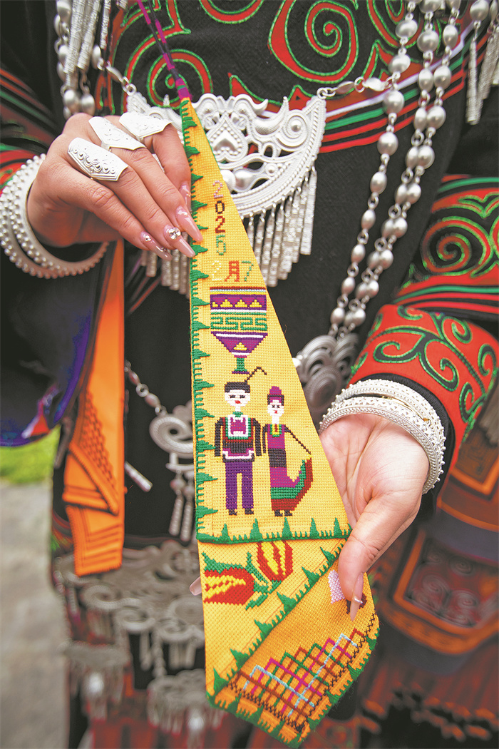 A close-up of Yi embroidery's distinctive patterns reveals the intricate symbolism and vibrant heritage woven into every stitch.[Photo provided by He Wei/For China Daily]