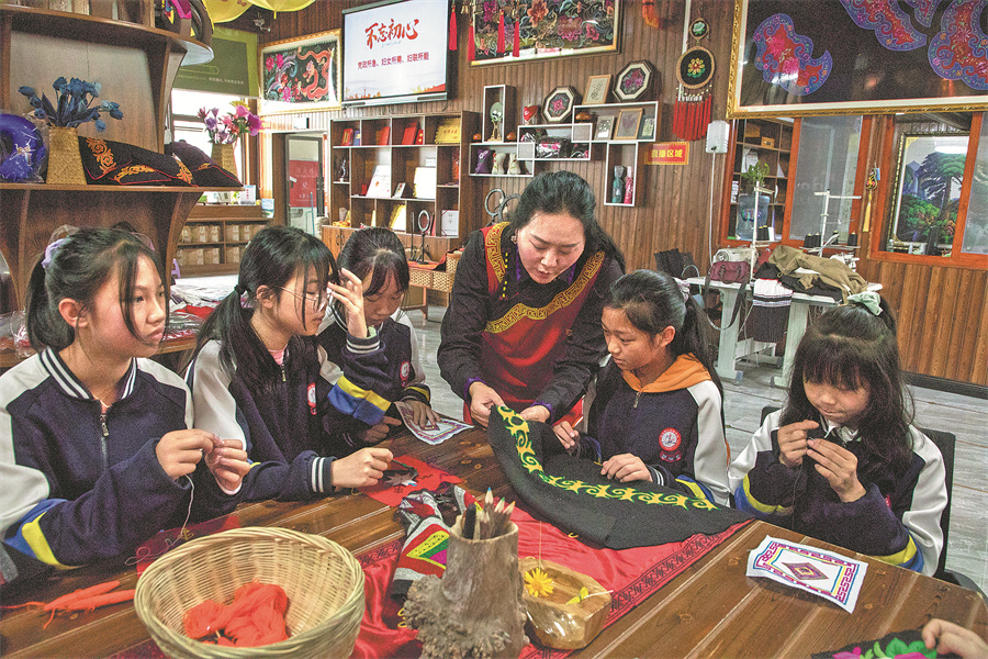 She shares the stories and techniques of this folk art with children, nurturing a new generation of inheritors.[Photo provided by He Wei/For China Daily]